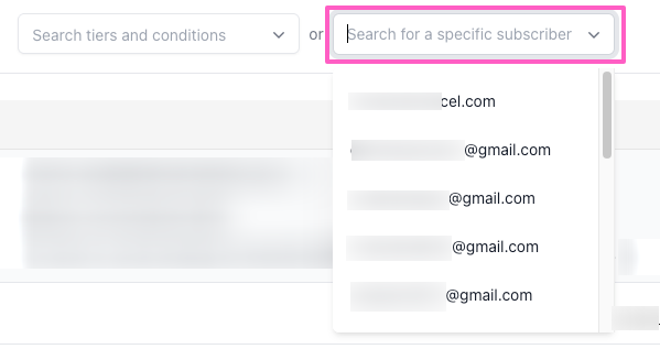 These two search options can’t be used together. Selecting a specific subscriber will override any tiers or conditions you’ve chosen.
