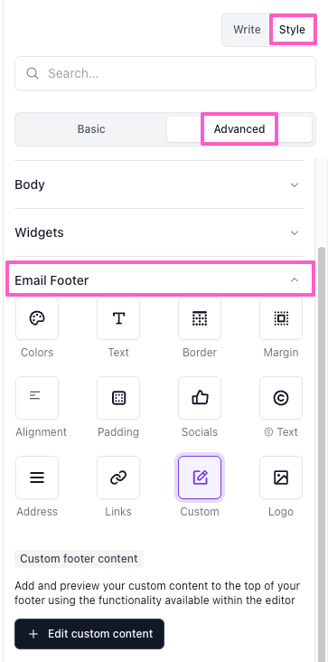 - Address Requirement: By law, your email footer must include an address. While this element cannot be removed through design customization, you can edit the address in your publication settings.