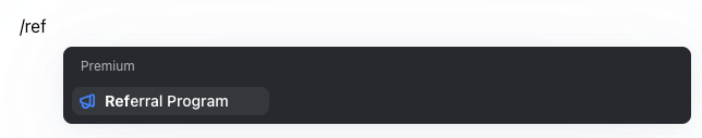 - Type /ref to access the post editor, under Premium, select the Referral Program.
