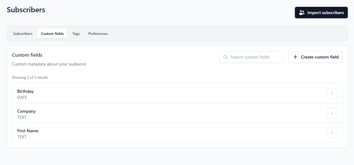 - Once saved, you’ll be taken back to your Subscribers dashboard where the new custom field will be listed.