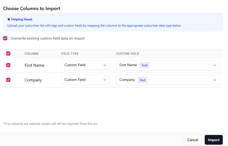 We've made it easy to import any previous custom fields you have created for your subscribers.