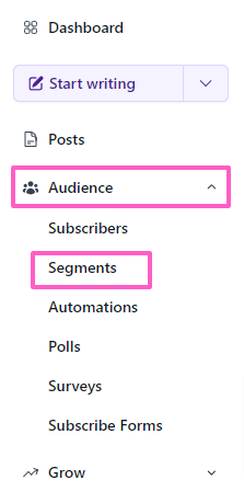 - Send targeted newsletters: Use a segment to send newsletters to specific groups of subscribers directly from the Audience page of the post flow.