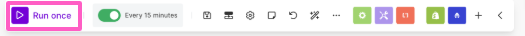 - Be sure to run the new integration at least once to test it out. From the bottom bar, click the Run once option.